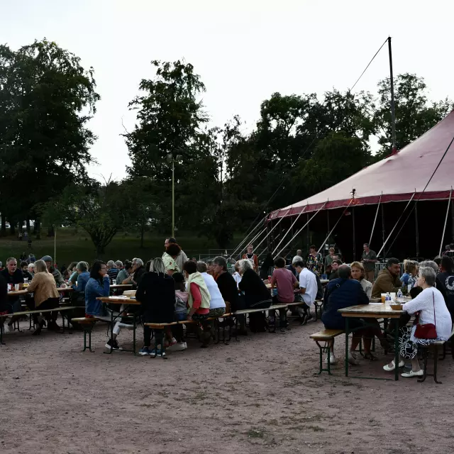 Well, without moving… The energy, groove, rhythm and melodies of the artists draw the audience under the big top erected for the occasion.